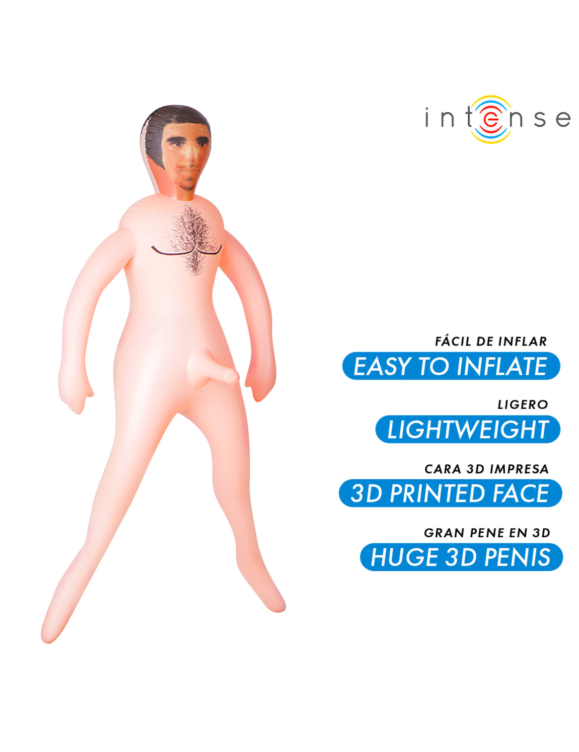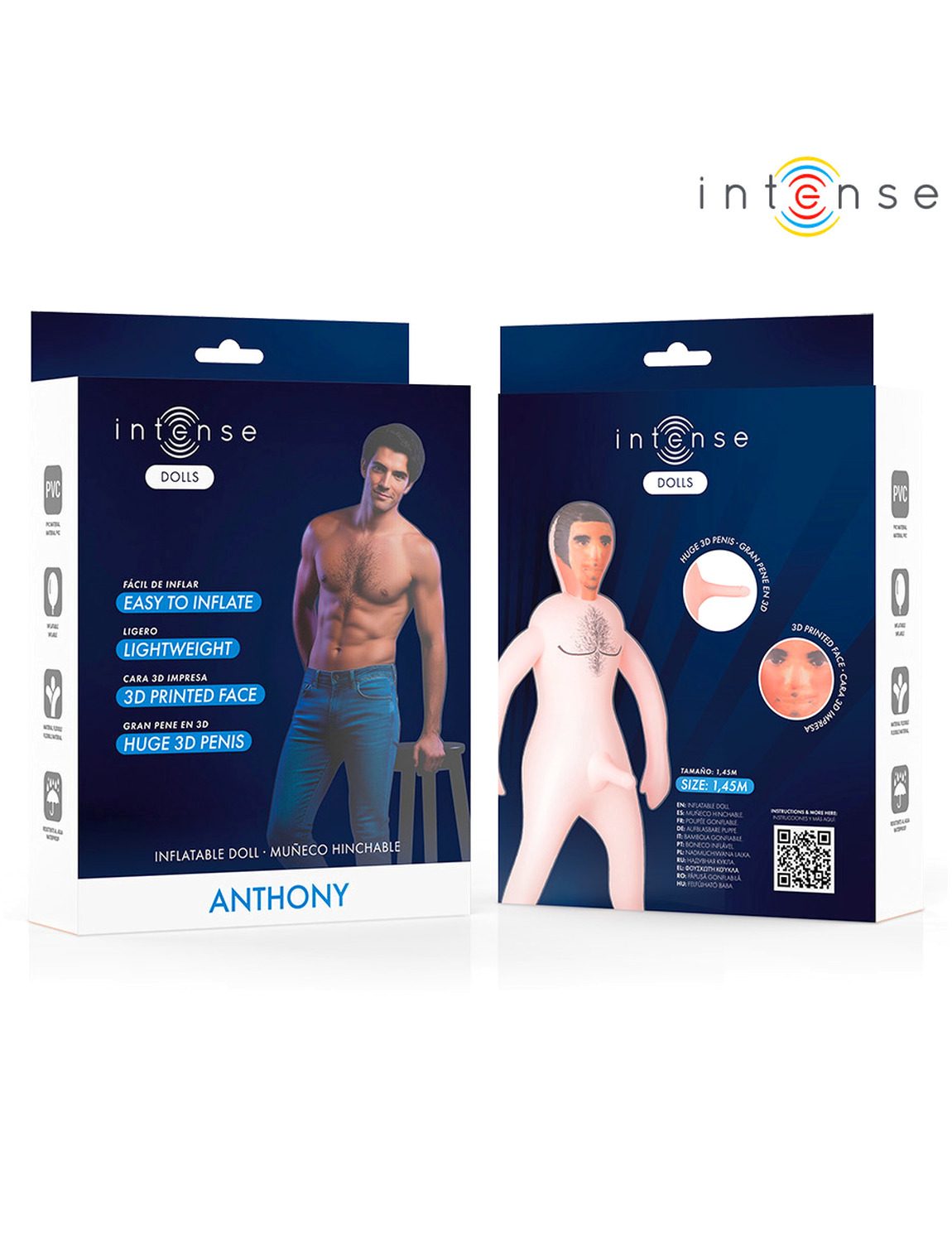 Descubre una nueva forma de disfrutar con Anthony, el muñeco hinchable masculino de Intense Dolls, diseñado para ofrecer una experiencia sensual, realista y divertida. Con un cuerpo anatómico y un pene 3D de gran tamaño, este muñeco es el compañero ideal para explorar tus fantasías con total libertad y comodidad.