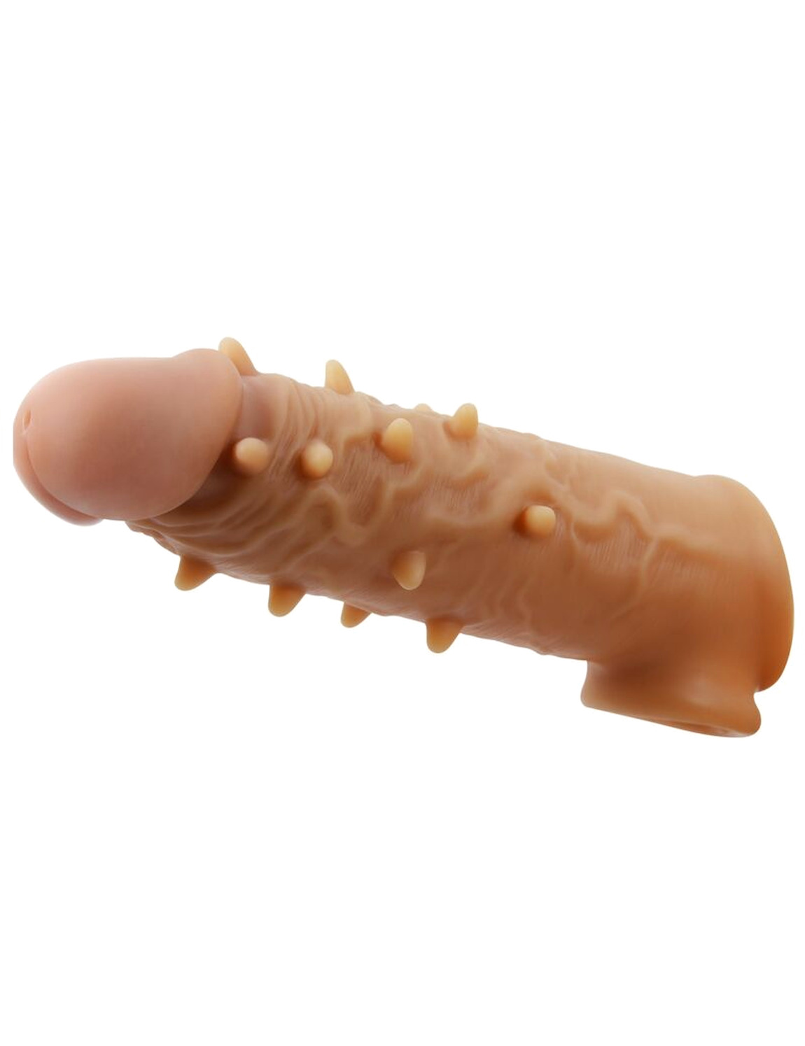 La funda está hecha de silicona líquida similar a la piel para esa sensación ultrarrealista y está esculpida por expertos para tener un aspecto realista. Esta funda de extensión de pene de sensación natural se ajusta a su erección con un eje cómodo y hueco y un anillo para testículos para un ajuste seguro que no se moverá durante el juego. Las gruesas paredes de las mangas y los nudos elevados les ofrecen aún más estimulación con cada empuje.