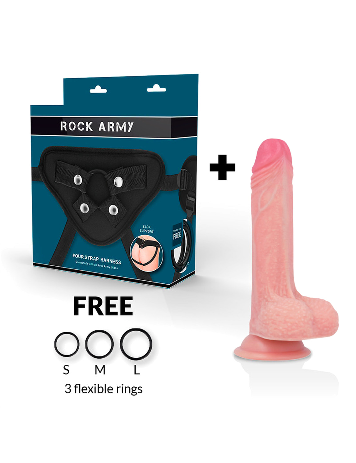 Rockarmy - Arnés + Liquid Silicone Dildo Premium Mustang 18 Cm -O- 4.14 Cm