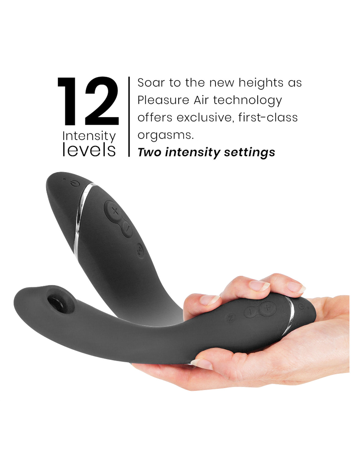 Los 12 niveles de intensidad de Pleasure Air se controlan fácilmente con dos botones, ya sea aumentando o disminuyendo las sensaciones, y los 3 niveles de vibración se pueden alternar con solo presionar un botón. La función de brillo posterior te permite bajar de tu subidón maravilloso bajando el OG a su configuración más baja para un final relajante.
