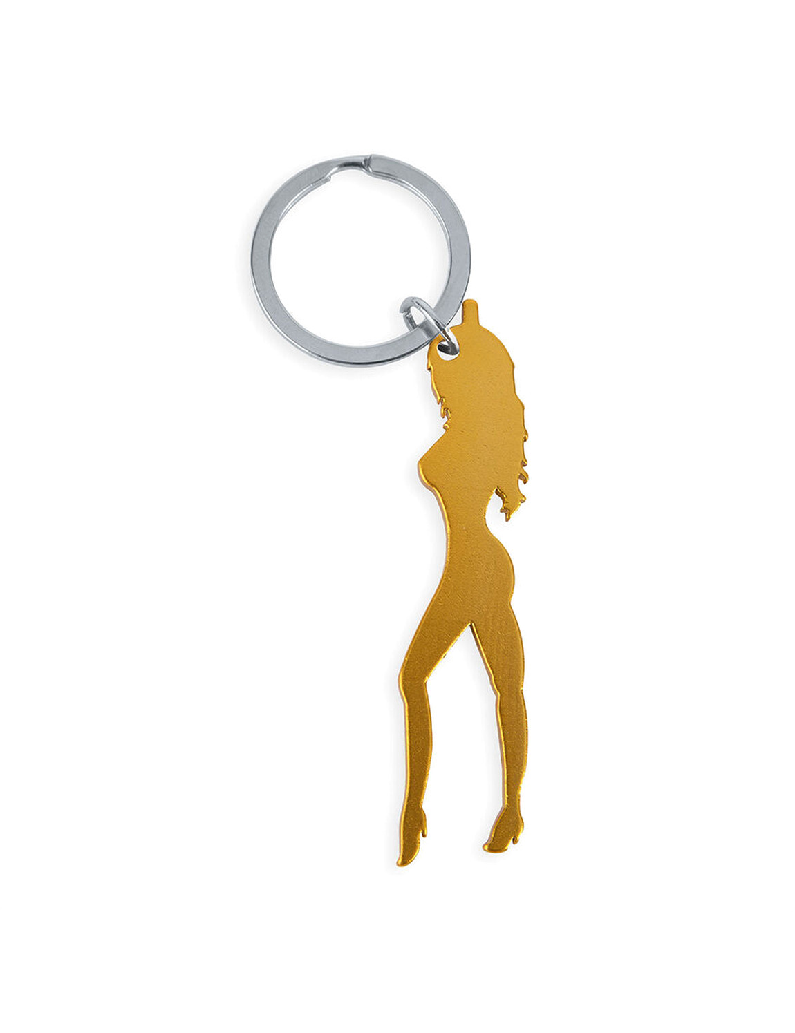diablo picante - chaveiro com silhueta feminina na cor dourada com abridor de cerveja