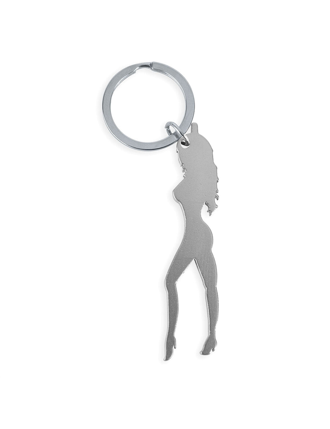 diablo picante - chaveiro com silhueta feminina na cor prata com abridor de cerveja