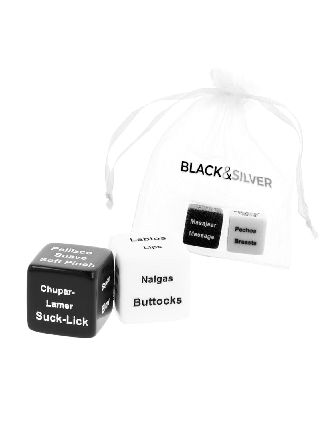 Simples mas perfeito para brincar a dois, experimentar novas sensações ou reavivar paixões adormecidas. Os dados Preto e Prata marcarão o caminho direto a seguir rumo ao prazer.