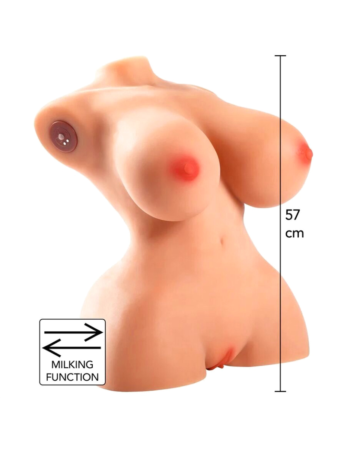 Este torso masturbador feminino combina um tamanho prático com um realismo impressionante. Equipado com uma função de "ordenha" de 7 velocidades, seu canal interno foi projetado para massagear e sugar ritmicamente, levando a um clímax explosivo. Seu formato inclui um busto pronunciado e curvas naturais que não apenas realçam seu apelo estético, mas também servem como pontos de apoio ideais para controlar a intensidade e o ritmo de cada encontro.